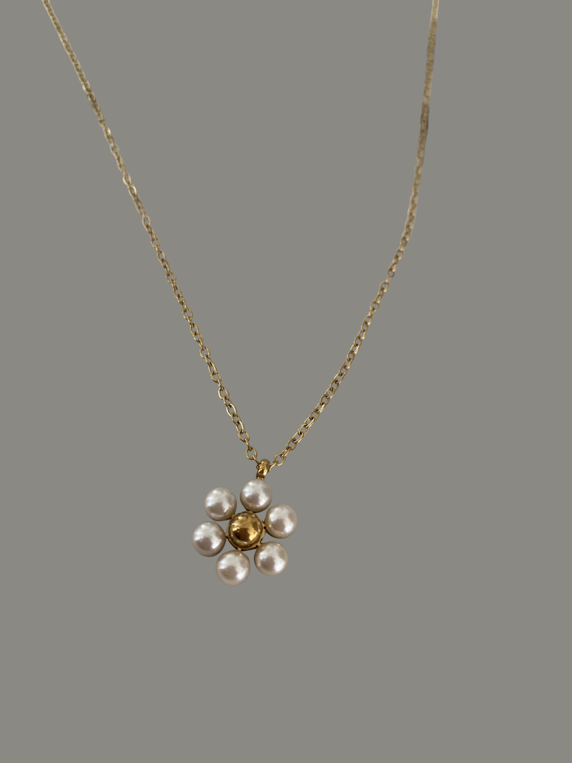 Maravilloso collar de Flor pequeña con pétalos de perla y centro dorado, amada para realzar tus looks Chic ♡!