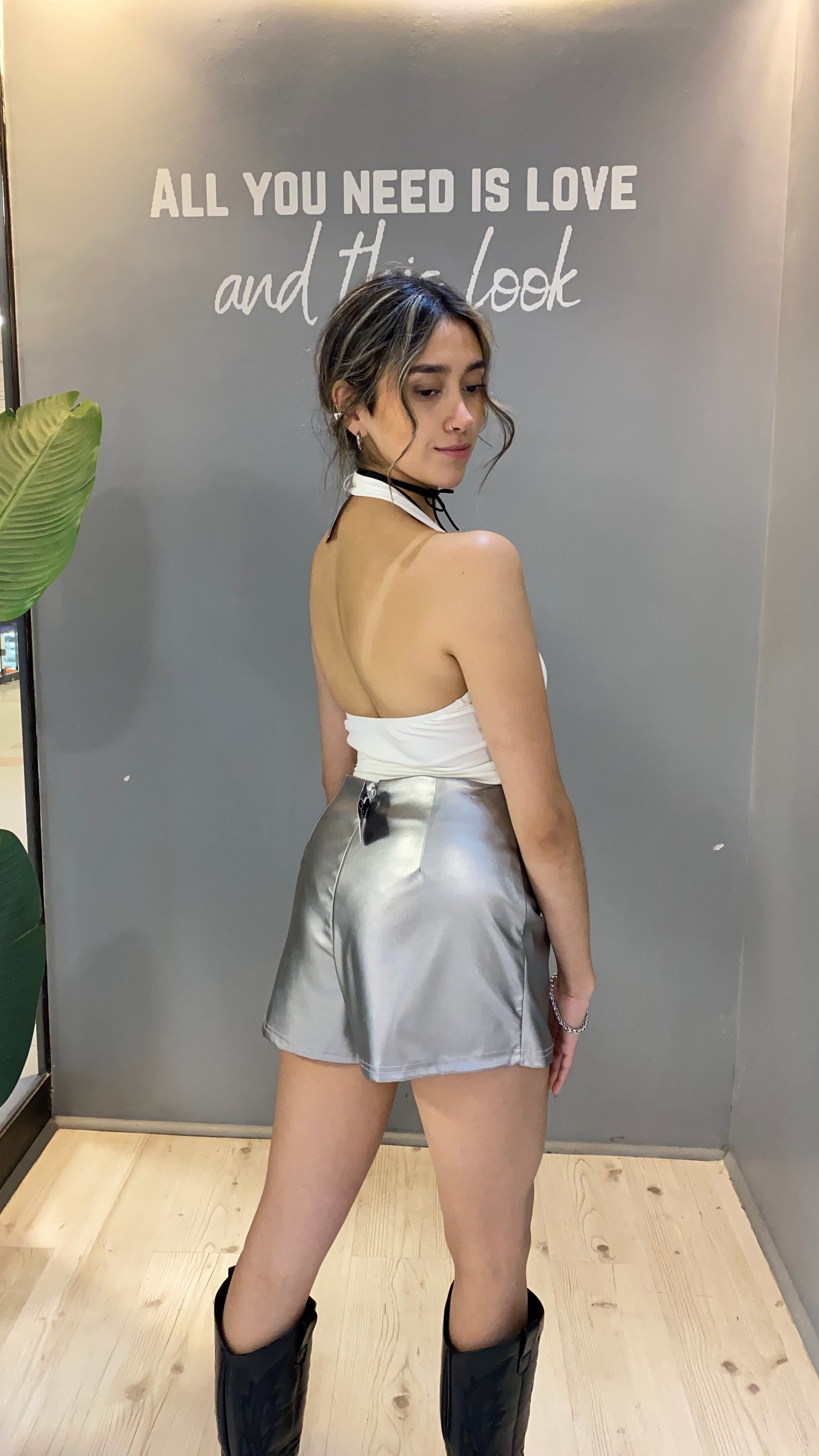 FALDASHORT ECOCUERO PLATEADA